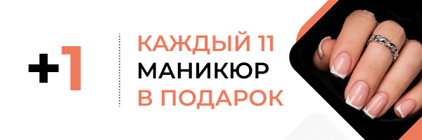Мечтаете о безупречных ногтях и приятных бонусах? Наша акция «Одиннадцатый маникюр бесплатно» — это ваш шанс позаботиться о руках и сэкономить! Посетите нас 10 раз для создания идеального маникюра — классического, с покрытием или дизайном на ваш вкус — и мы подарим вам 11-й маникюр абсолютно бесплатно. Всё, что нужно, — записаться, наслаждаться качественным уходом от наших мастеров и накапливать визиты. После десятого сеанса вы получите следующий маникюр в подарок, без лишних условий и ограничений по времени. Это отличная возможность экспериментировать с новыми оттенками, ухаживать за ногтями регулярно и чувствовать себя уверенно каждый день. Акция открыта для всех клиентов — приходите, балуйте себя и получайте заслуженные бонусы за вашу верность нашему салону!